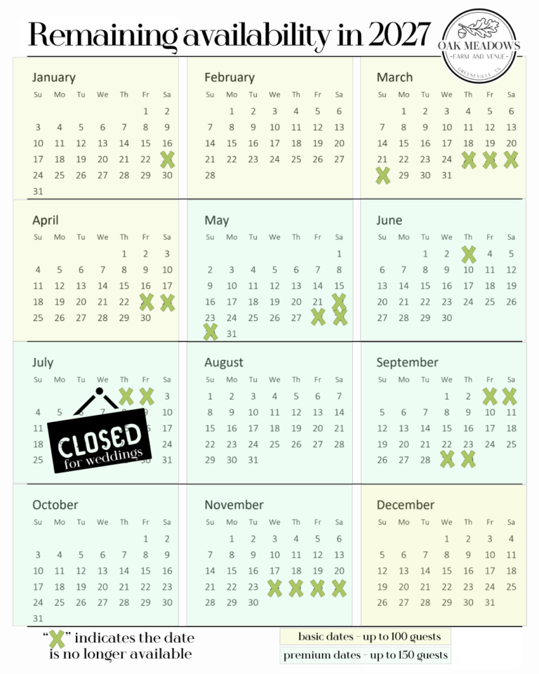 We do our best to keep calendar up to date, but you will still need to reach out to verify availability.